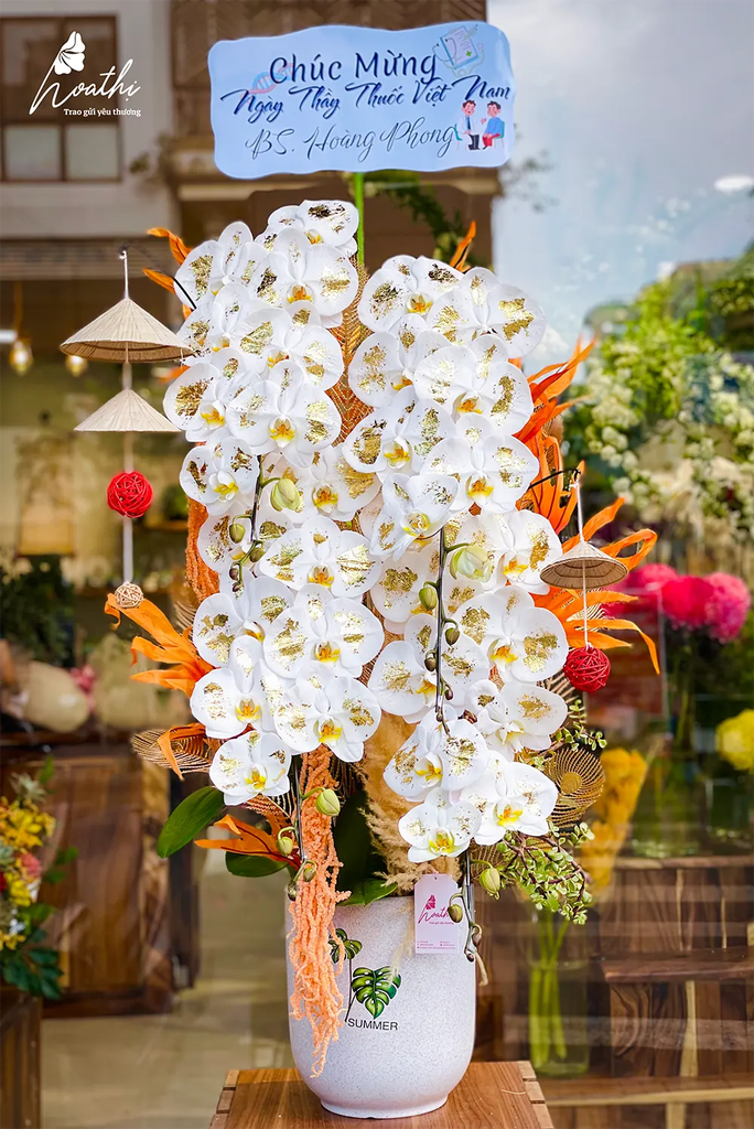 (*) Shop Hoa Thị cam kết sản phẩm thực tế giống mẫu từ 80% trở lên, đảm bảo đúng hoa chính và tông màu chủ đạo. Các loại hoa và lá phụ có thể thay đổi tùy theo mùa, và sẽ được thông báo để Quý khách xác nhận trước khi tiến hành cắm hoặc bó hoa.